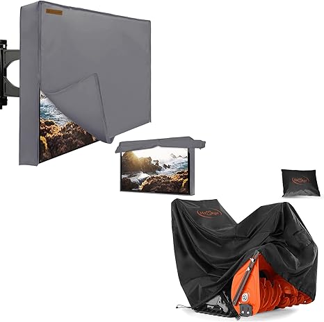Details: Outdoor TV Cover 40-43 Inches+Snow Blower Cover, HOMEYA 600D Heavy Duty Weatherproof TV Enclosure with Front Flap, Waterproof Zipper+Bottom Cover, Snow Thrower Cover Waterproof Snowblower Protector
